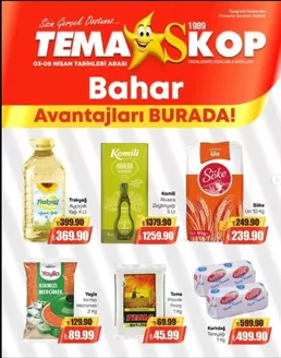 Şenkaya’deki Tema Market mağazalarındaki fırsatları kaçırmayın ve 2026 Nisan boyunca en iyi fiyatlarla güncel kalın. Tiendeo’da, her zaman en iyi mağazaları ve alışveriş seçeneklerini bulabilirsiniz. Şimdi mağazaları ve sizin için hazırladığımız promosyonları keşfetmeye başlayın!